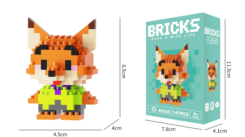 Set de constructie lego, mini personaj, desene animate, Vulpe, 147 piese, Pentru copii si adulti